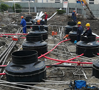 该集水坑可承受极端环境条件,在 -40°C 至 80°C 的温度下有效运行。其 HDPE 材料具有 ≥8 kN/m² 的抗压强度和 ≥10 KJ/m² 的抗冲击性,不会开裂,即使在重机械载荷或地面沉降下也能确保可靠的性能。RFFDS 集水坑与单壁或双壁复合管道兼容,适用于各种地下管道布局,同时保持密封且易于维护的环境。